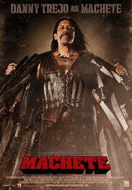 Machete è, senza giri di parole, un film di serie B. Ma è diretto, montato e confezionato come uno di serie A. Robert Rodriguez compie veramente uno splendido lavoro scrivendo una storia prettamente banale - dell'eroe incastrato dal cattivo di turno - che ha come protagonista l'agente federale "Machete" (Danny Trejo) che, durante un'operazione, viene incastrato dal suo capo corrotto e in affari con Rogelio Torrez (Steven Seagal), signore della droga, che gli uccide moglie e figlia. Tre anni più tardi "Machete" non ha dimenticato - come ogni eroe che si rispetti -, e viene contattato da un ricco uomo d'affari che lo incarica di uccidere il senatore McLaughlin (Robert De Niro), ma l'operazione viene boicottata, e Machete, ritrovatosi nuovamente incastrato, decide di vendicarsi una volta per tutte.